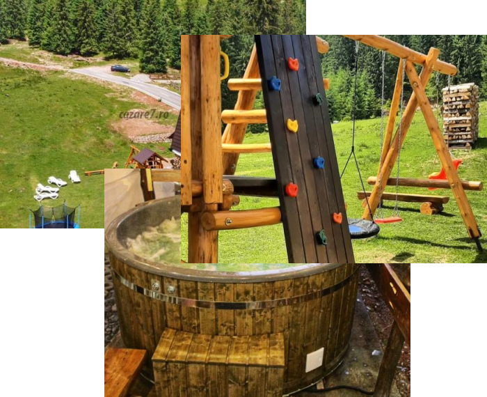Cabana este structurata in felul urmator: - parter : living, bucatarie si o camera dubla (pat matrimonial) - etaj 1 : 1 camera dubla (pat matrimonial), 1 camera tripla (un pat matrimonial si un pat pt. 1 persoana), 1 camera cu 4 locuri (un pat matrimonial si o canapea extensibila) - mansarda: 1 camera cu 4 locuri (un pat matrimonial si o canapea extensibila), 2 camere triple foarte spatioase ( un pat matrimonial si un pat pt 1 persoana) Camerele sunt foarte spatioase dotate cu baie proprie, Tv, wifi. In curte exista posibilitate de a face...